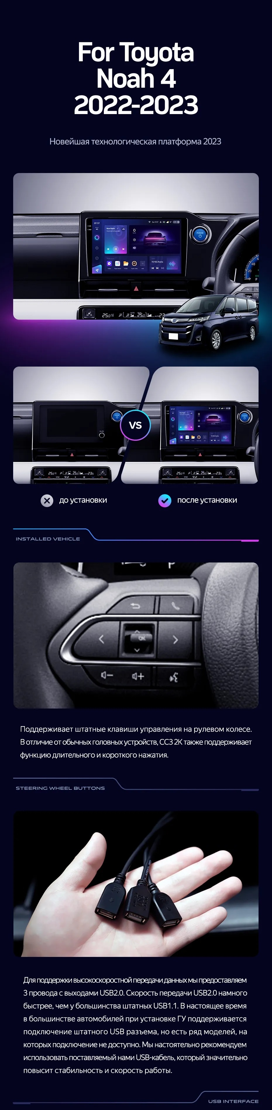 Полный комплект установки магнитолы Teyes с рамкой и проводкой можно выбрать в каталоге штатных магнитол Toyota Noah 4 R90 (2022-2023).