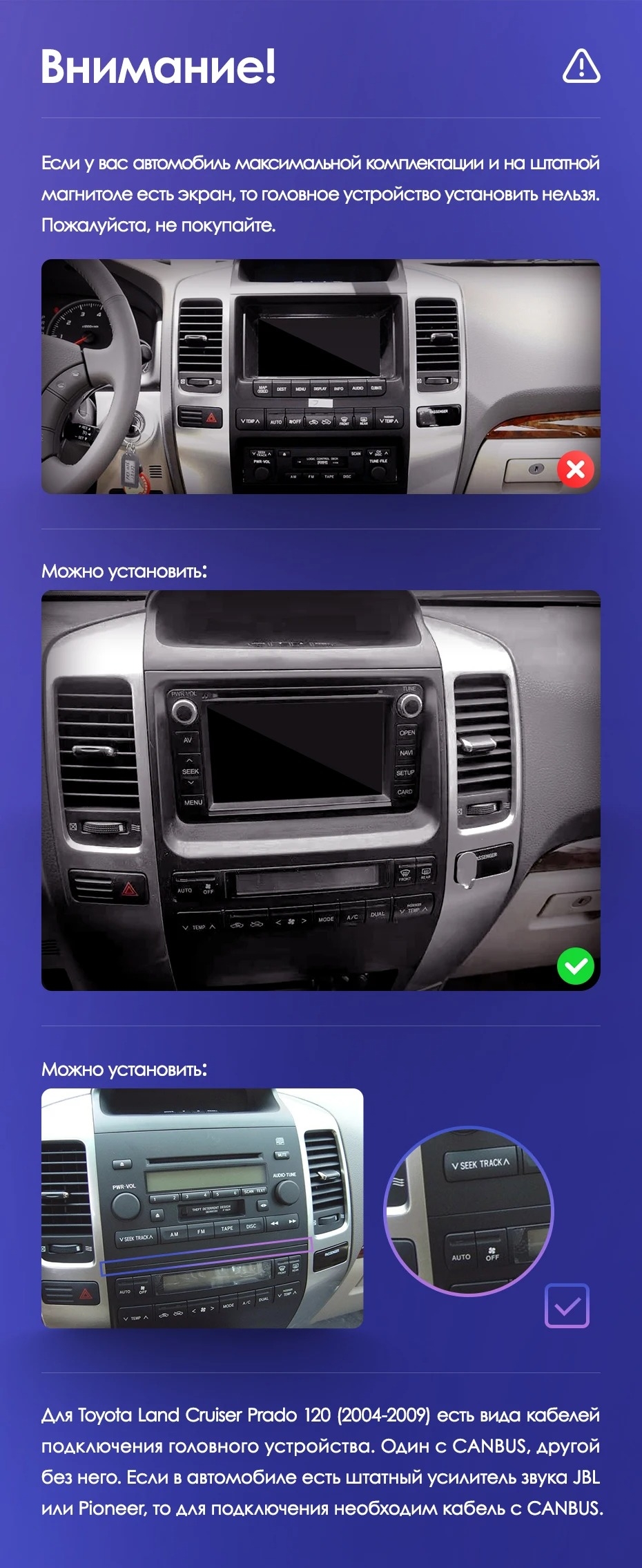 Полный комплект установки магнитолы Teyes с рамкой и проводкой можно выбрать в каталоге штатных магнитол Lexus GX470 (2002-2009).