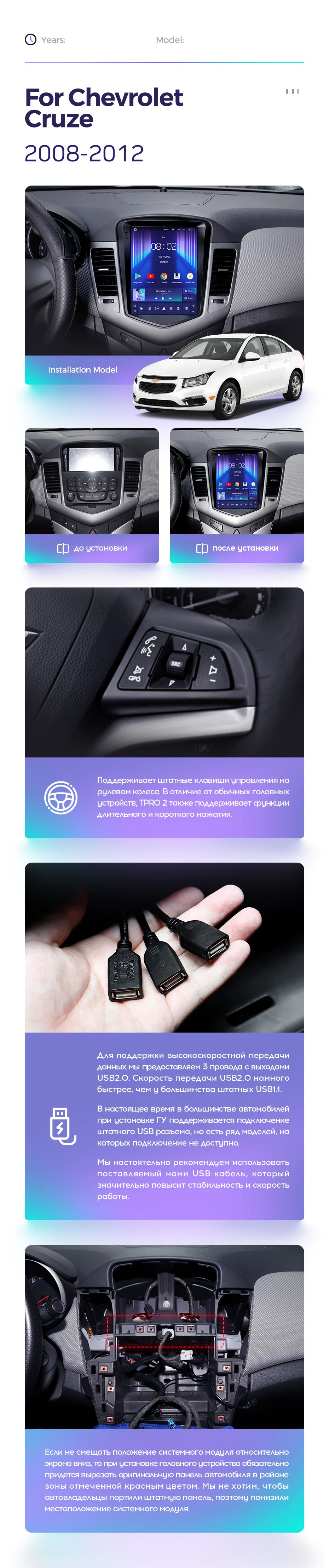 Полный комплект установки магнитолы Teyes с рамкой и проводкой можно выбрать в каталоге штатных магнитол Chevrolet Cruze J300 2008-2012.